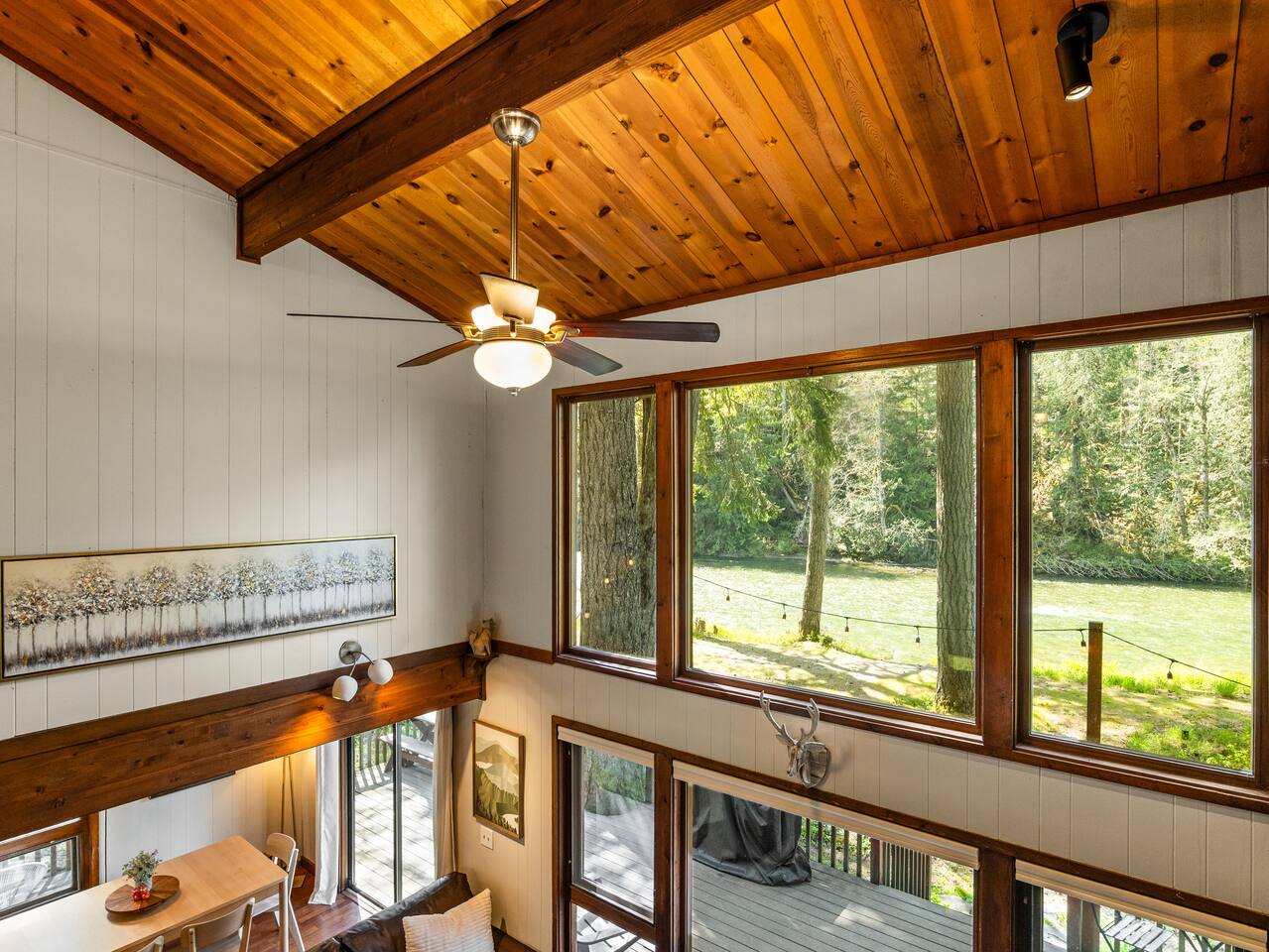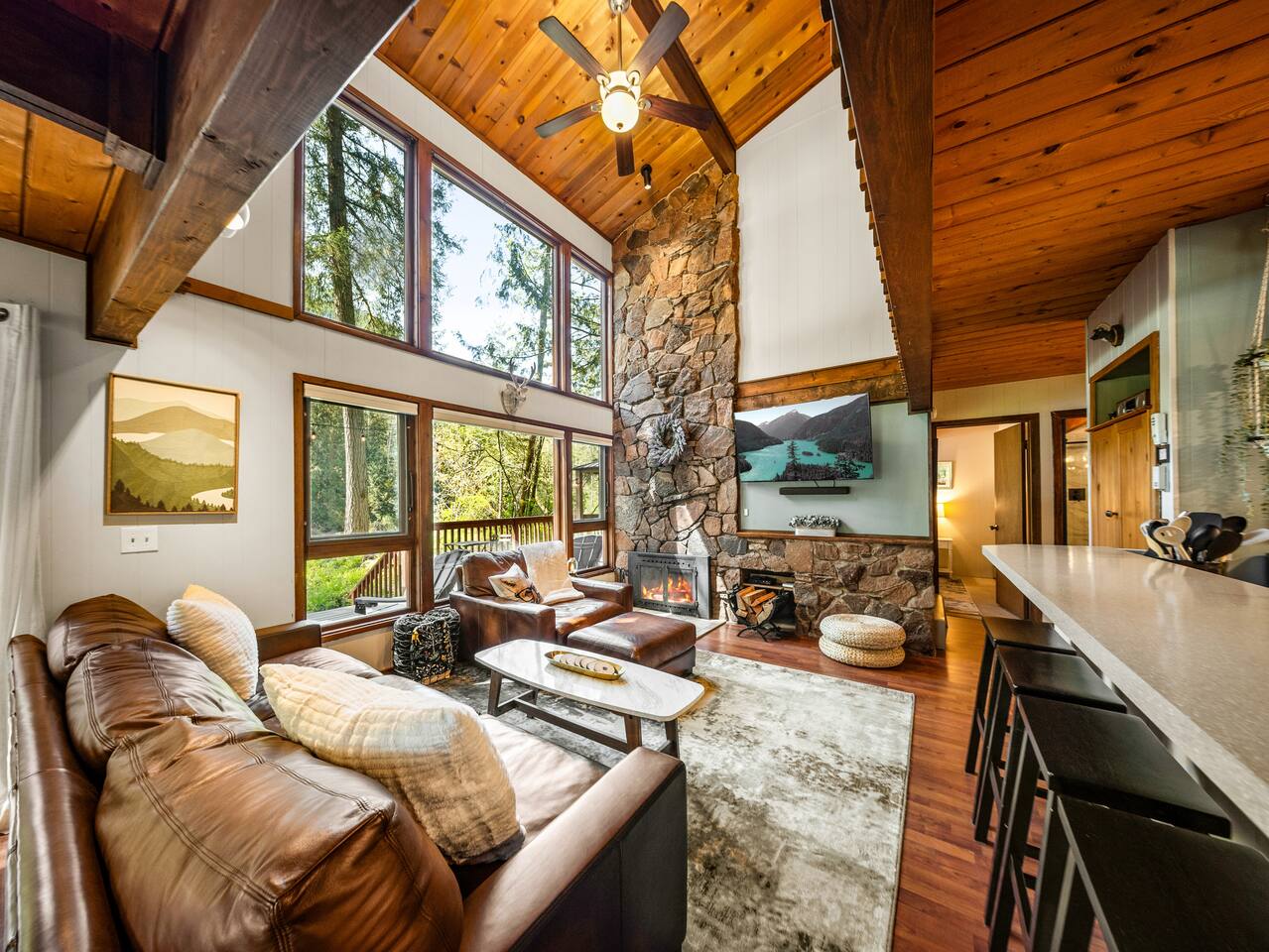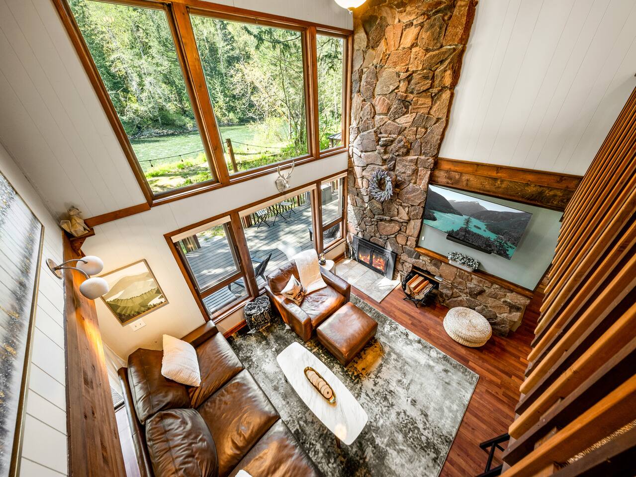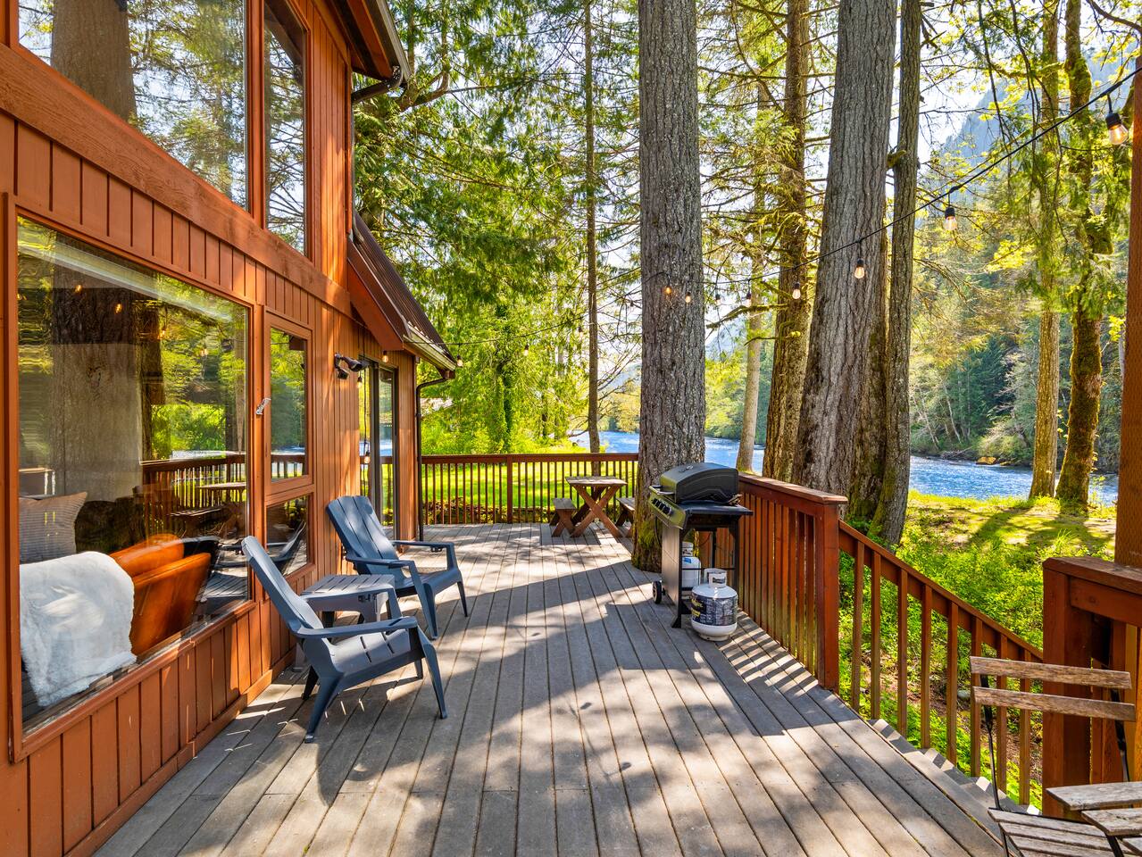 Make lifetime memories at Fox Haven! Riverfront cabin with large 2 story river view windows, vaulted ceilings, deck w/ covered hot tub + BBQ, 2 King beds, gig internet! Sleeping 7 guests comfortably, this cabin is ideal for all seasons: hiking, fishing, rafting, 25 min to skiing/snowboarding at Stevens Pass. Or relax by the river. This beautiful, pet-friendly home is the perfect North Cascades destination for your next vacation, or ideal remote work getaway!