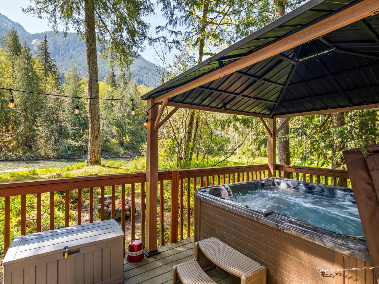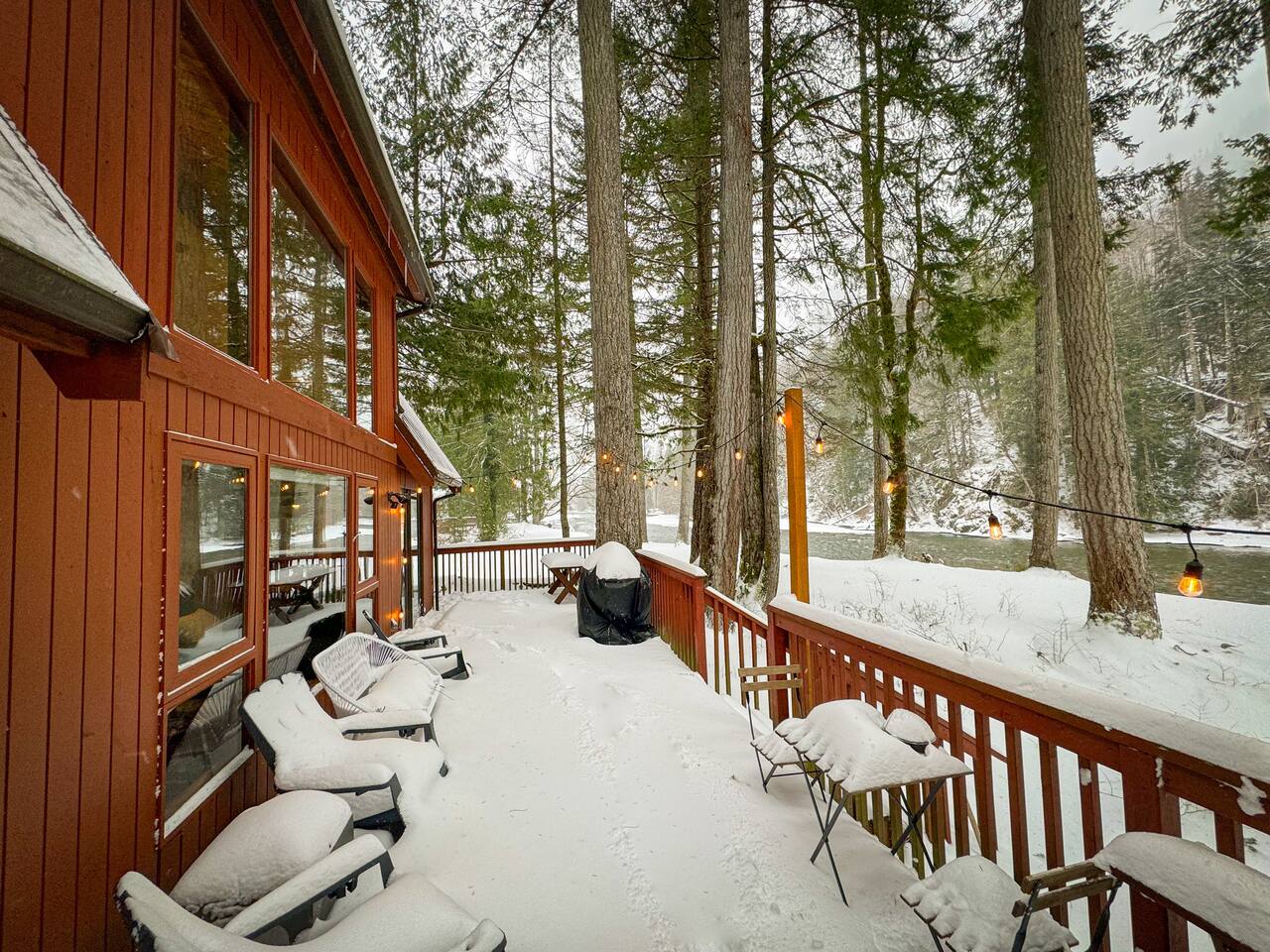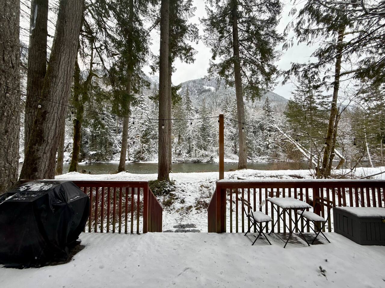 Only 20+ Min to Stevens Pass Mountain Resort! 60+ Min to Leavenworth With three bedrooms (1 with a king bed, 1 with a king + a daybed & 1 with a queen bed), and two full bathrooms, your group of up to 7 people will be comfortable in the cabin. There is seating at the dining table for 6 with 4 barstools at the counter. A well-stocked kitchen including dishwasher, washer and dryer and fiber gig internet mean that you'll be able to enjoy the comforts of home whether you're staying the weekend or for a week or two. Newly installed automatic transfer generator helps protect your stay in the case of a power outage! These mountain communities are prone to power outages during winter storms. Rest assured that you will stay warm and cozy regardless of what the weather does during your visit. This cabin is perfect in all seasons. In the winter, watch the snow fall as you relax in the brand new covered hot tub after a day of skiing/snowboarding or sip hot cocoa in front of the wood burning fireplace. In the summer, take a dip in the refreshing mountain water, or relax with a book on the deck while your stresses are carried away with the sound of the river. Once the sun goes down make s’mores at the fire pit (burn ban permitting)! Enjoy the amazing hiking that the Sky Valley offers with your 4 legged friend! Raining outside? That's ok! Play some of the provided board games! Bake some delicious cookies in the new oven, then take them to the table and work on a puzzle. Prefer streaming/scrolling? Gig speed fiber and a 55" Smart TV will keep you entertained and connected. Even though it's only an hour's drive from downtown Seattle, this comfortable cabin retreat feels like it's a million miles away. There is parking in front of the cabin, with a gently steep but short driveway to access it. We do recommend 4 wheel drive, or you can also park on the neighborhood street. The driveway is not appropriate for commercial sized vehicles or RVs.