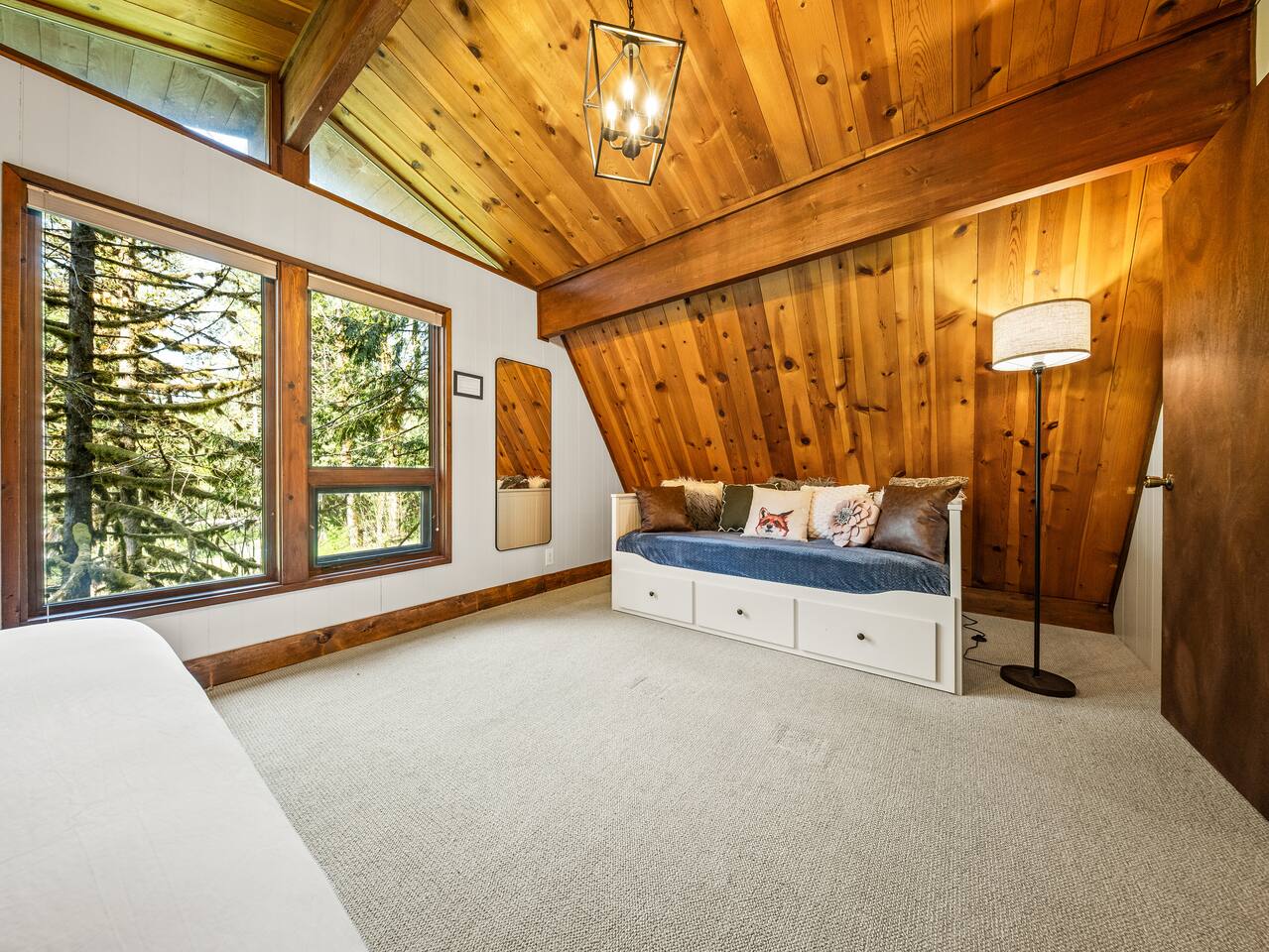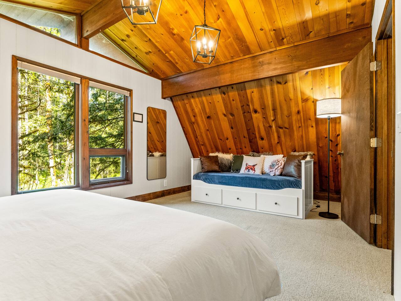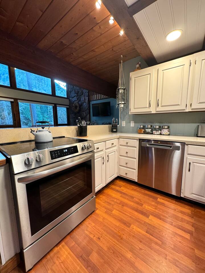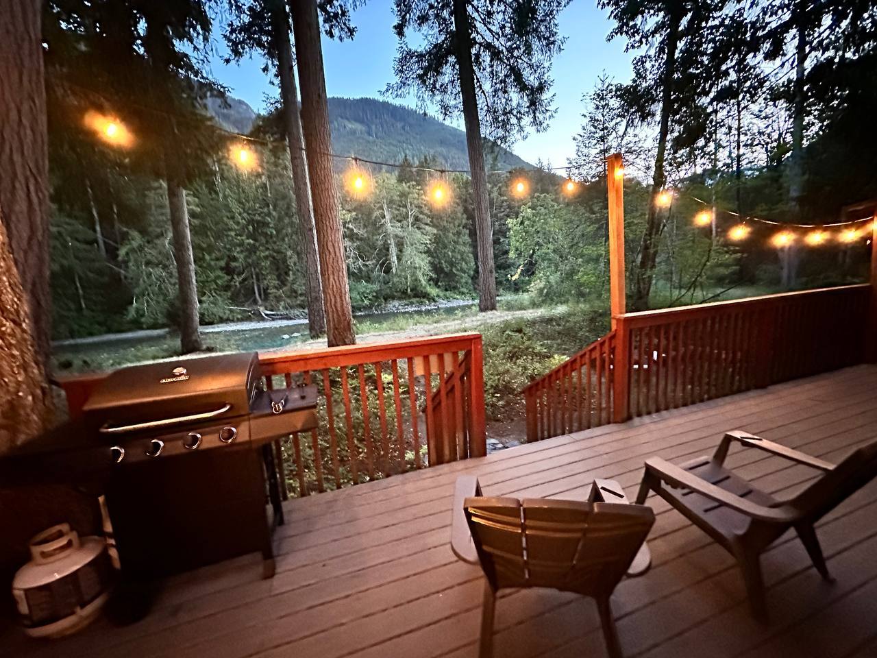 Only 20+ Min to Stevens Pass Mountain Resort! 60+ Min to Leavenworth With three bedrooms (1 with a king bed, 1 with a king + a daybed & 1 with a queen bed), and two full bathrooms, your group of up to 7 people will be comfortable in the cabin. There is seating at the dining table for 6 with 4 barstools at the counter. A well-stocked kitchen including dishwasher, washer and dryer and fiber gig internet mean that you'll be able to enjoy the comforts of home whether you're staying the weekend or for a week or two. Newly installed automatic transfer generator helps protect your stay in the case of a power outage! These mountain communities are prone to power outages during winter storms. Rest assured that you will stay warm and cozy regardless of what the weather does during your visit. This cabin is perfect in all seasons. In the winter, watch the snow fall as you relax in the brand new covered hot tub after a day of skiing/snowboarding or sip hot cocoa in front of the wood burning fireplace. In the summer, take a dip in the refreshing mountain water, or relax with a book on the deck while your stresses are carried away with the sound of the river. Once the sun goes down make s’mores at the fire pit (burn ban permitting)! Enjoy the amazing hiking that the Sky Valley offers with your 4 legged friend! Raining outside? That's ok! Play some of the provided board games! Bake some delicious cookies in the new oven, then take them to the table and work on a puzzle. Prefer streaming/scrolling? Gig speed fiber and a 55" Smart TV will keep you entertained and connected. Even though it's only an hour's drive from downtown Seattle, this comfortable cabin retreat feels like it's a million miles away. There is parking in front of the cabin, with a gently steep but short driveway to access it. We do recommend 4 wheel drive, or you can also park on the neighborhood street. The driveway is not appropriate for commercial sized vehicles or RVs.